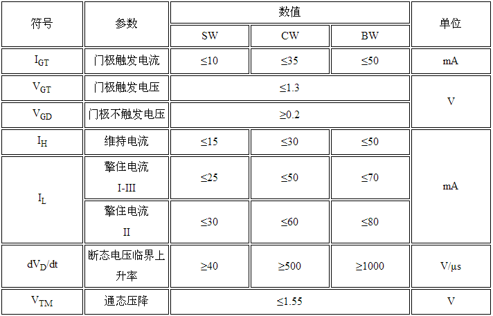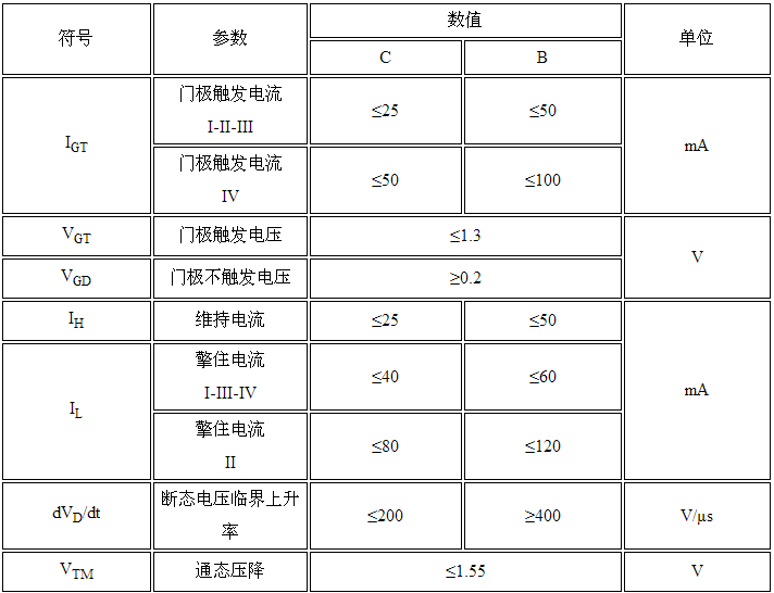 16A双向可控硅 BTA16的电特性: